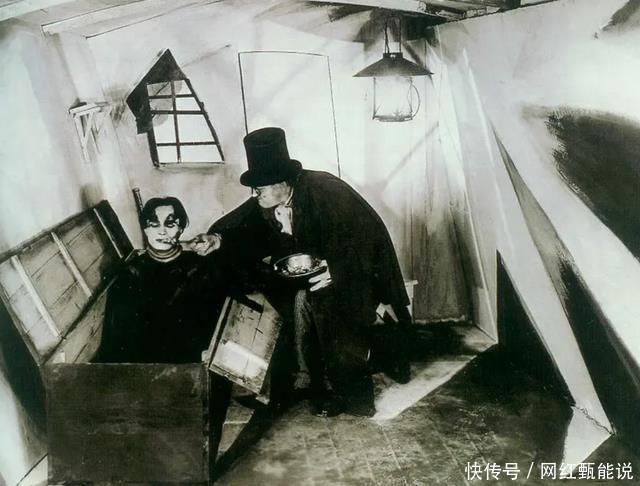△1935年纳粹宣传电影《意志的胜利》 另一面,用超现实的先锋表达展示对环境扭曲、压抑的控诉。 邱默云被拷打的房间,鲜明的光影布置,恰似德国表现主义的经典《卡里加里博士的小屋》。